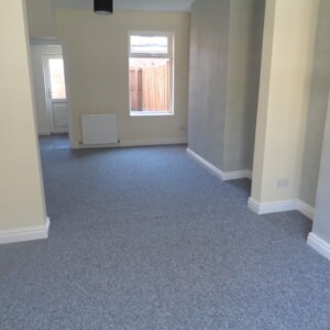 LOUNGE 22′ 5" x 10′ 8" (6.83m x 3.25m) Measured at widest point and into bay. With uPVC double glazed bay window which overlooks the front, uPVC double glazed window which overlooks the rear, double central heating radiator, single central heating radiator, TV point, understairs storage cupboard.