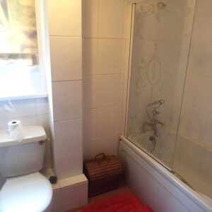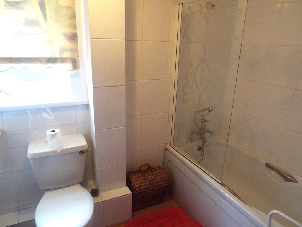 BATHROOM 8′ 10" x 5′ 3" (2.69m x 1.6m) With panelled bath having handle grips, mixer tap and shower attached, shower screen, fully tiled walls, uPVC obscured double glazed window which overlooks the rear, pedestal wash hand basin, low level WC and single central heating radiator.