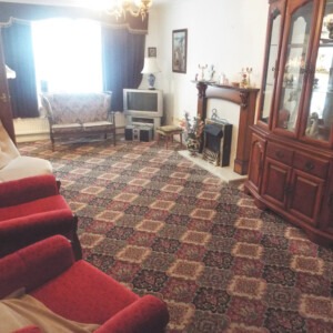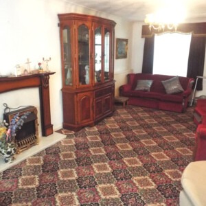 LOUNGE 21′ 8" x 11′ 0" (6.6m x 3.35m) With uPVC double glazed windows which overlook the front and rear, fire surround, TV point, double central heating radiator and cornice to the ceiling.