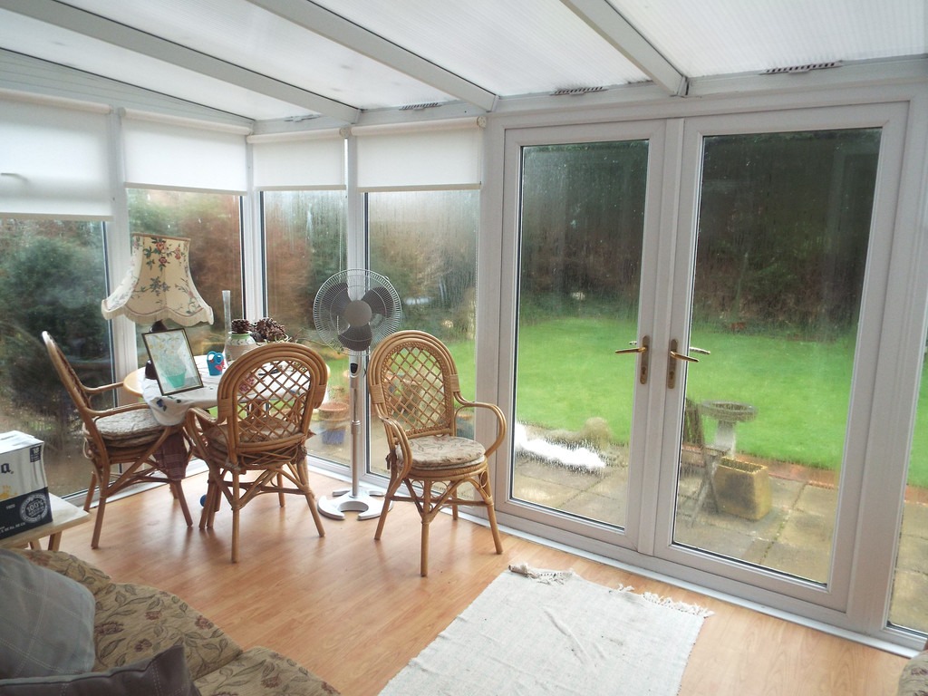 CONSERVATORY 14′ 8" x 8′ 9" (4.47m x 2.67m) With uPVC double glazed windows and uPVC double glazed french doors leading to the rear garden, electric radiator and laminate flooring.