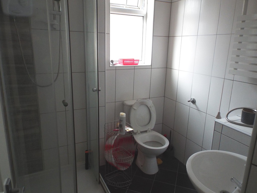 SHOWER ROOM 5′ 6" x 6′ 1" (1.68m x 1.85m) With shower cubicle, pedestal wash hand basin, low level WC, fully tiled walls, uPVC obscured double glazed window which overlooks the side, extractor and wall-mounted radiator.
