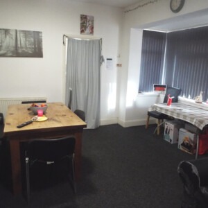 COMMUNAL LOUNGE 17′ 3" x 14′ 2" (5.26m x 4.32m) Measured into bay. With uPVC double glazed bay window overlooking the side, TV point, double and single central heating radiators.