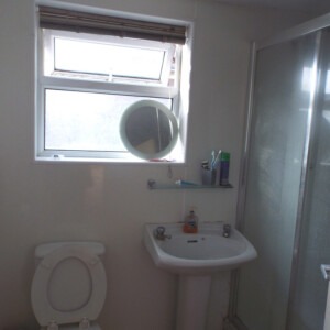 GROUND FLOOR REAR LETTING ROOM 14′ 0" x 12′ 0" (4.27m x 3.66m) With uPVC double glazed bay window which overlooks the rear, pedestal wash hand basin, TV point, single central heating radiator and dado rail.