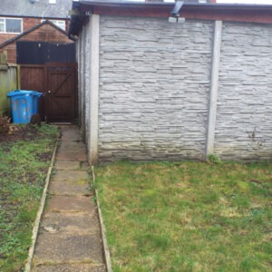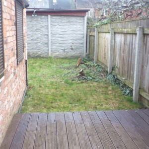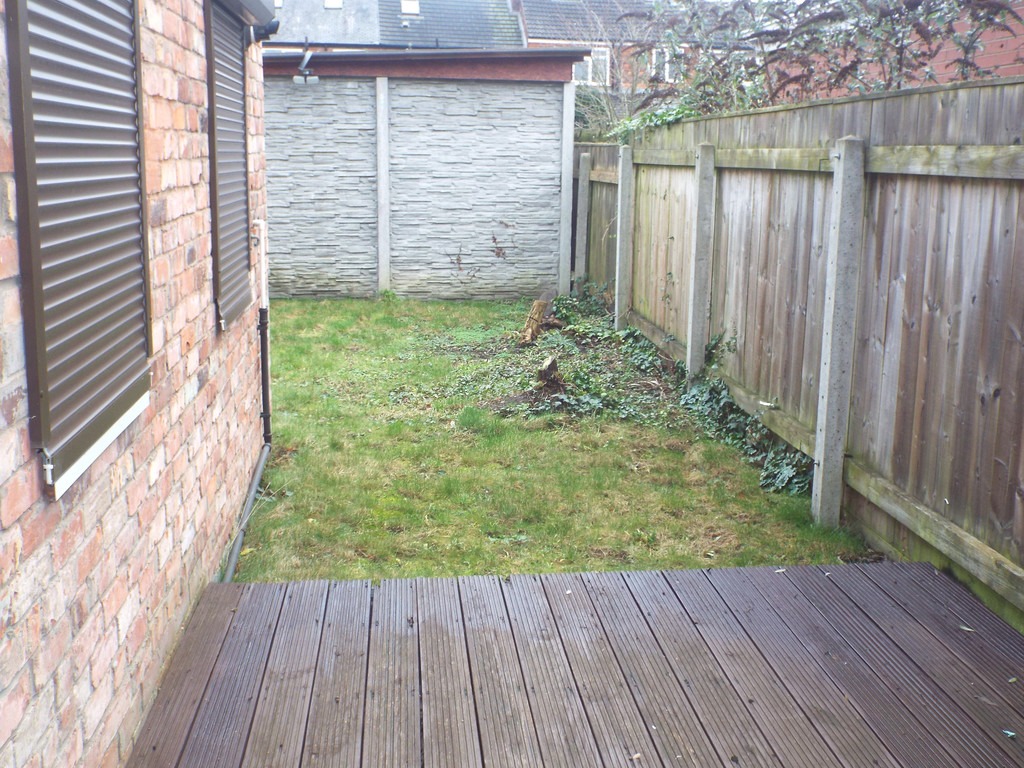 OUTSIDE To the front of the property there is a forecourt area which wrought-iron fencing and gate. To the rear there is a garden with decking area, lawn, fencing on the perimeters and path. There is also rear vehicular access which leads to a concrete-sectional Garage.