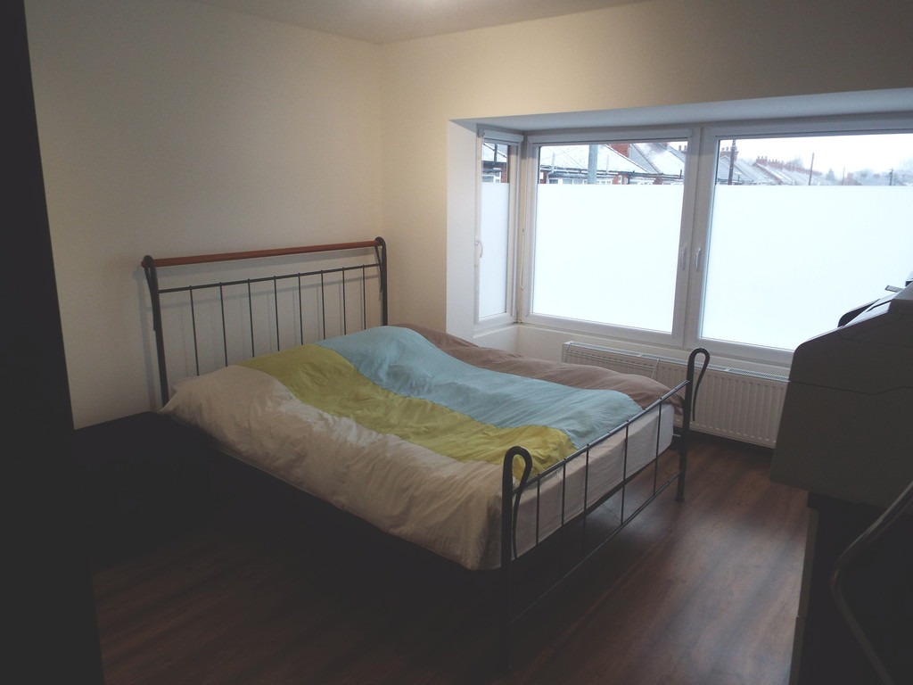 MASTER BEDROOM 13′ 7" x 11′ 3" (4.14m x 3.43m) Measured into bay. With uPVC double glazed bay window which overlooks the front, quality laid flooring, double central heating radiator, TV point.