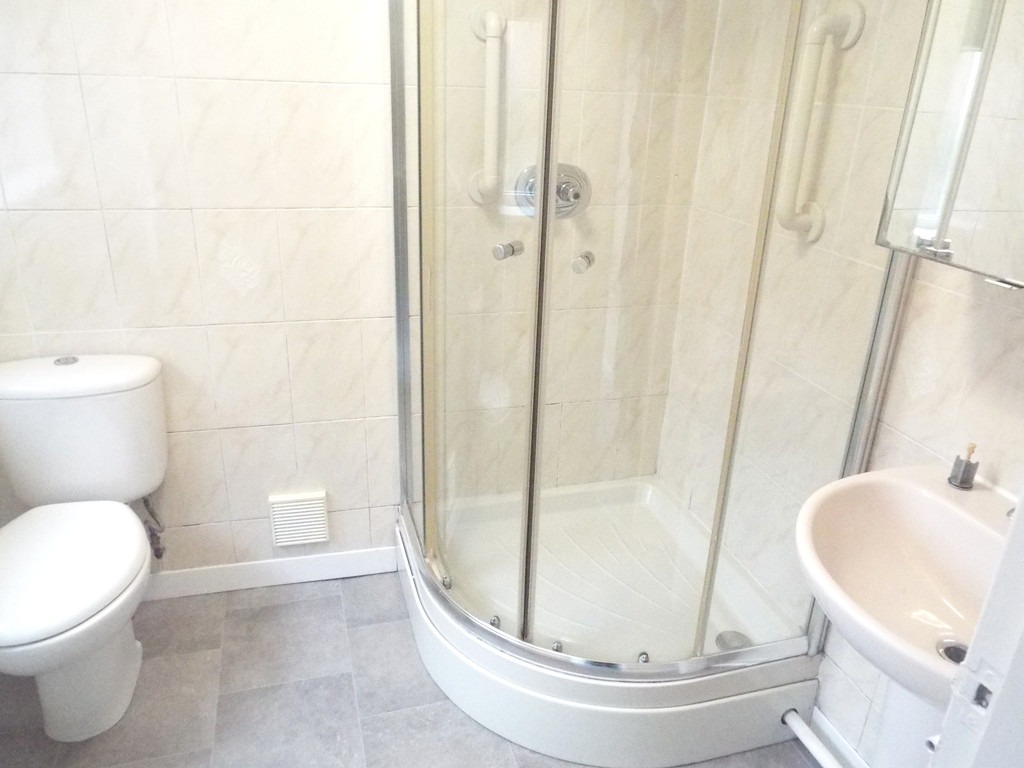 SHOWER ROOM 6′ 9" x 5′ 5" (2.06m x 1.65m) With shower cubicle, pedestal wash hand basin with mixer tap, low level WC, fully tiled walls, uPVC obscured double glazed window which overlooks the side.