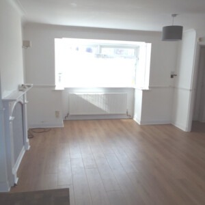 LOUNGE/DINING AREA 20′ 6" x 16′ 3" (6.25m x 4.95m) Measurement narrows to 7’4. With a uPVC double glazed bay window which overlooks the front, double central heating radiator, cornice to the ceiling, laminate flooring, uPVC double glazed French doors leading to the rear courtyard garden, TV point.