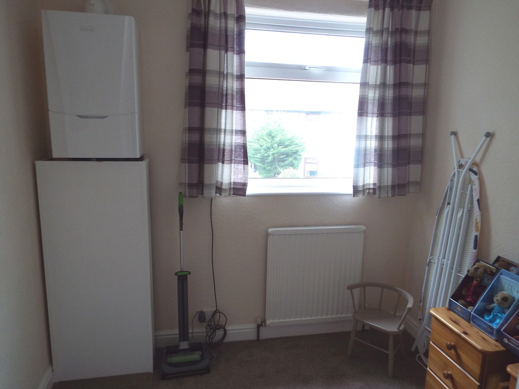 BEDROOM 3 8′ 2" x 8′ 3" (2.49m x 2.51m) With uPVC double glazed window which overlooks the front, single central heating radiator, wall-mounted boiler serving central heating and hot water.