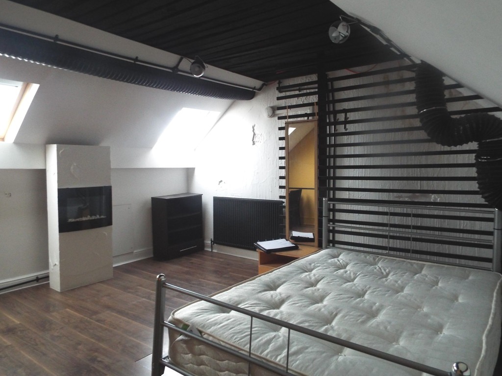 SECOND FLOOR LOFT ROOM 15′ 10" x 15′ 0" (4.83m x 4.57m) With 2 skylight windows, laminate flooring and central heating radiator.