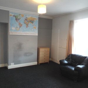 FRONT ROOM 12′ 7" x 13′ 7" (3.84m x 4.14m) Measured into bay and recess. With uPVC double glazed bay window which overlooks the front, dado rail, cornice to the ceiling and rose, single central heating radiator and TV point.