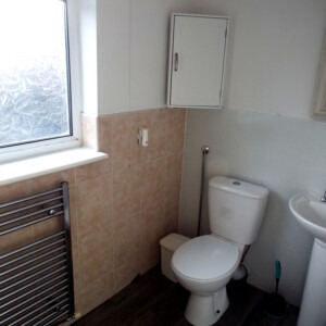 SHOWER ROOM 6′ 5" x 6′ 1" (1.96m x 1.85m) With shower cubicle, uPVC obscured double glazed window which overlooks the rear, pedestal wash hand basin, low level WC, tiled areas, extractor and heated chrome towel rail.