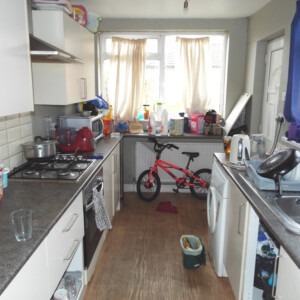 2ND RECEPTION ROOM 14′ 11" x 9′ 9" (4.55m x 2.97m) With uPVC double glazed window which overlooks the rear, single central heating radiator, understairs cupboard and recess, laminate flooring.