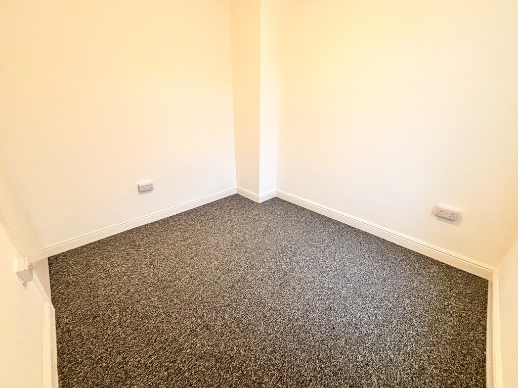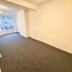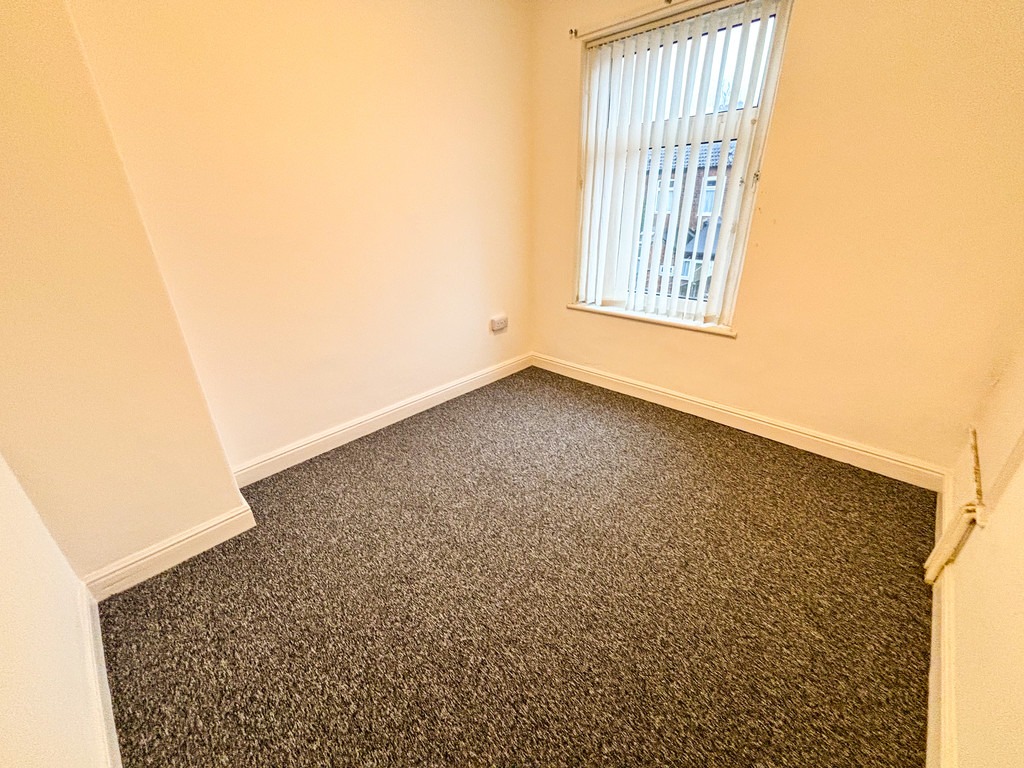 BEDROOM 1 A good-sized bedroom located at the front of the property, featuring a large window that fills the room with natural light. The room benefits from fresh paint and new carpeting, creating a bright and comfortable space ideal for relaxing or working.